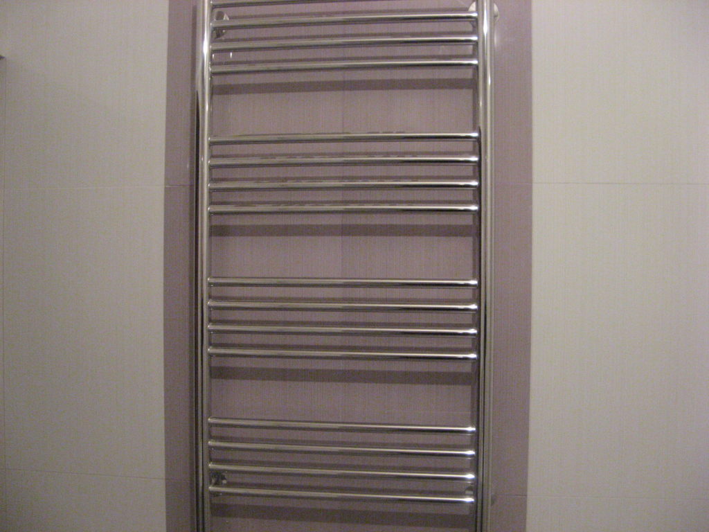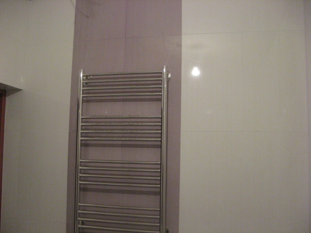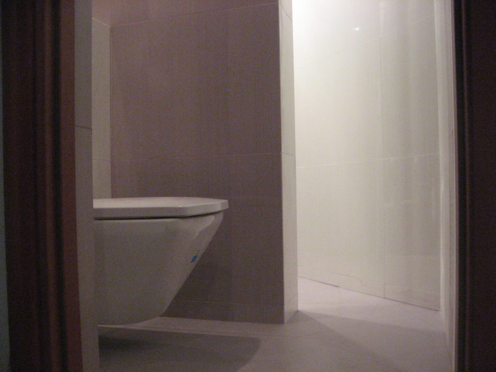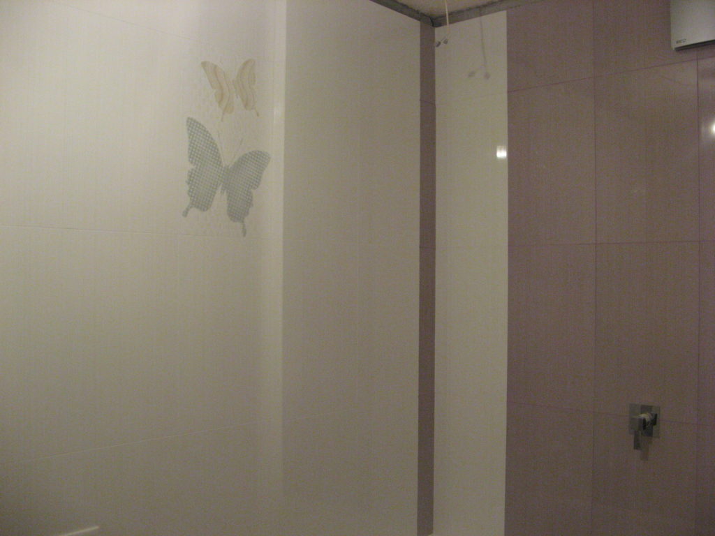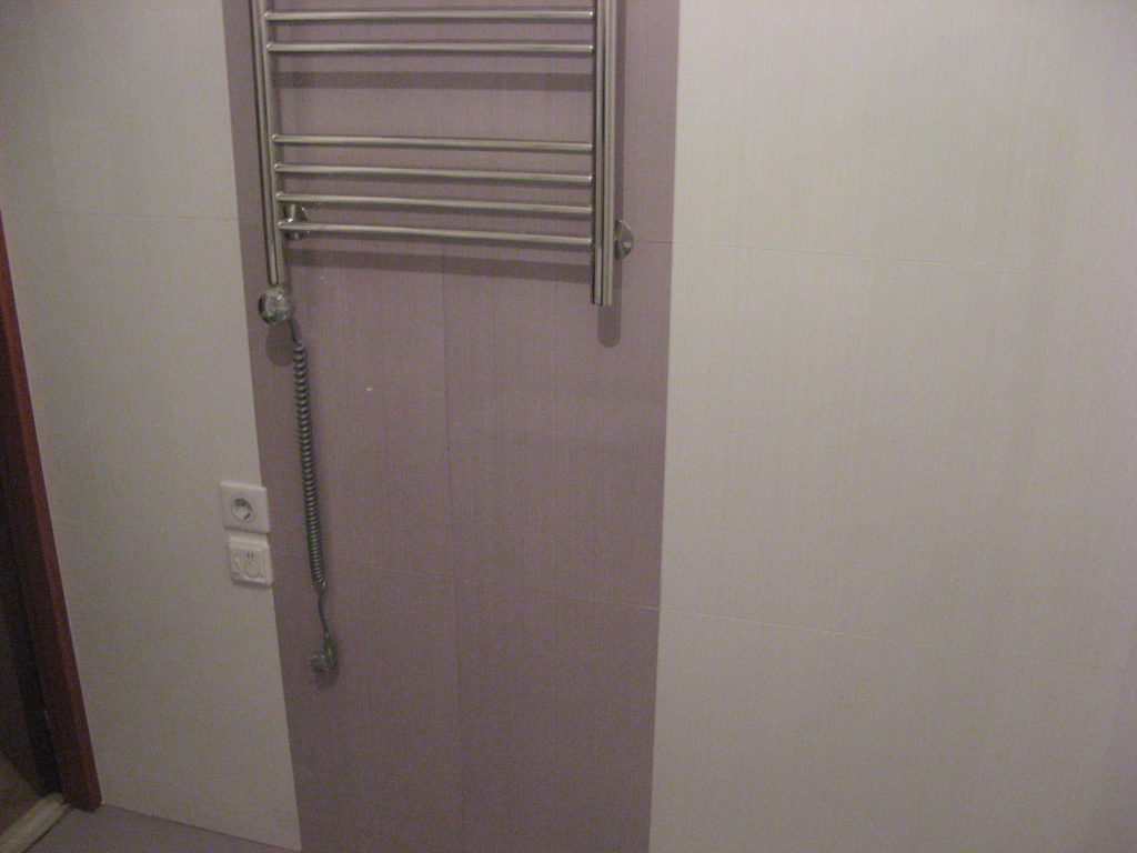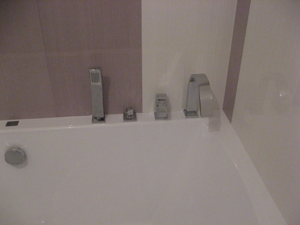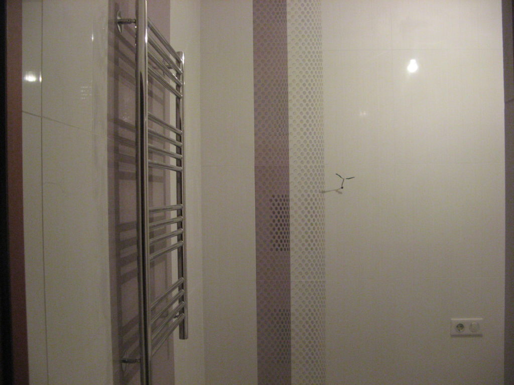 При ремонте раздельного санузла на улице Вавилова мастера полностью демонтировали отделку вплоть до бетона и разобрали старый трубопровод. После укладки стяжки, выравнивания поверхностей и монтажа коммуникаций мы установили на потолок подвесную конструкцию со встроенными светильниками, а пол и стены облицевали крупноформатной керамической плиткой в трендовом бежевом цвете. Прямоугольная ванна занимает всю нишу вдоль глухой стены. Изюминки интерьера: облицованный в тон общей композиции экран, отсутствие привычного умывальника и монтаж крана прямо на торцевой части ванны. В помещении также установлены подвесной унитаз с душем биде и электрический полотенцесушитель. Цена ремонт – 124 тыс. руб. Черновые материалы – 33000 р.
