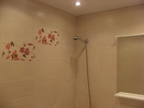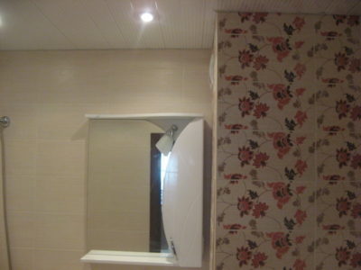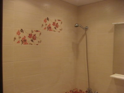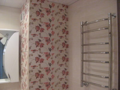 Наша компания выполнила капитальный ремонт санузла в квартире, расположенной на бульваре Кавказский. В результате демонтажных и ремонтно-отделочных работ помещение приобрело аккуратный современный вид. В комнате удалось компактно расположить полноразмерную ванну, двухстворчатый мойдодыр, стиральную машинку, унитаз и полотенцесушитель. Воздухогон облицован керамической плиткой с цветочным рисунком. На остальные поверхности уложена однотонная плитка. Потолок оформлен пластиковыми панелями, в которые вмонтированы точечные светильники. Для освещения зеркала используется небольшое бра. Общая смета составила 122800 руб. На черновые материалы ушло 30900 р.