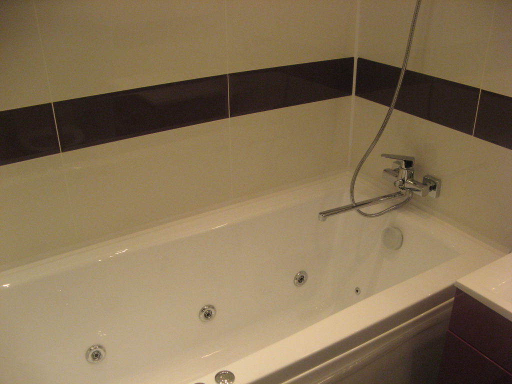 Мы выполнили ремонт совмещенного санузла на улице Коломенская по дизайн-проекту. Особенность помещения – нестандартная планировка с выступающим углом. Для комфорта жильцов мы перенесли унитаз на новое место и расположили его с правой стороны от входа, а перед ним установили стиральную машину. Центральное место комнаты перед входной дверью занимают умывальник с подвесной тумбой и большое зеркало. Вдоль глухой стены смонтирована ванна с функцией джакузи, а по бокам установлены полотенцесушитель и держатель для душа. При отделке стен использовался кафель молочного цвета. Придать интерьеру объема позволила контрастная фреза и фасады мойдодыра в темных тонах. Стоимость ремонта – 122000 рублей. Цена черновых материалов – 30 тыс. руб.