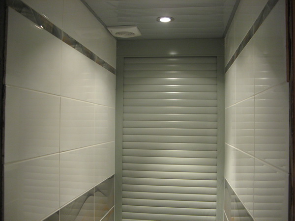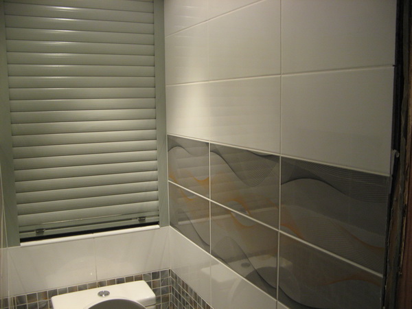 Наша компания выполнила элитный ремонт туалета в квартире на улице Трофимова. Отличительной особенностью дизайна стала облицовка стен тремя видами кафеля. В качестве декоративной фрезы использовалась мозаика серо-оранжевого цвета, разделяющая ряды белой и серой плиток. Для усиления общего впечатления на боковые поверхности нанесен рисунок с имитацией волны. Глянцевая поверхность с зеркальным эффектом придает помещению солидности. Инженерные коммуникации, включая гребенку отопления, скрыты за защитным экраном по типу вертикального жалюзи. Потолок оформлен пластиковыми панелями с рисунком. Для освещения использовались встроенные в потолочную конструкцию точечные светильники. Смонтирован новый унитаз. Стоимость ремонта — 28 тысяч рублей. Расходы на черновые материалы — 7 тыс. 300 руб.
