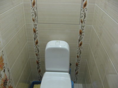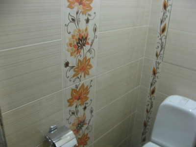Наша компания выполнила ремонт ванной комнаты и туалета на улице Гарибальди. Для облицовки стен и оформления пола мы выбрали кафель кремового цвета. Разбавить скучный интерьер удалось за счет отделки боковых поверхностей и экрана под ванной декоративным узором из керамической плитки с роскошным цветочным рисунком. В ванной комнате установлены полотенцесушитель, мойдодыр и ванна с гибким душем. На потолке смонтирована подвесная конструкция из металлического профиля и стеклянных панелей. В туалете установлен новый унитаз, а инженерные коммуникации замаскированы под общий интерьер. Стоимость работ под ключ составила 112 тысяч рублей. Черновые материалы — 36 тыс. р.