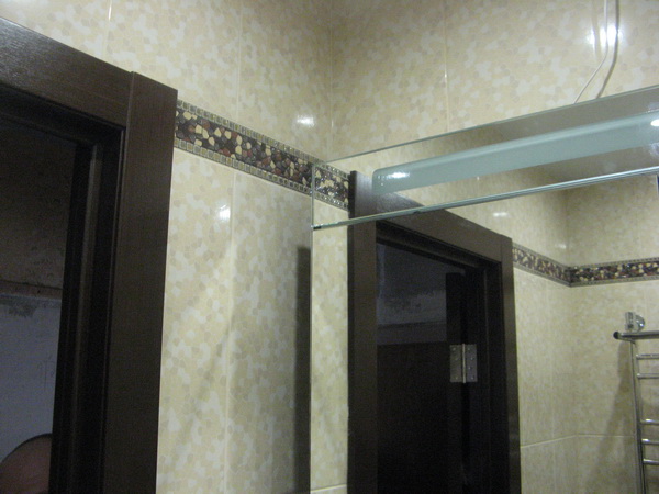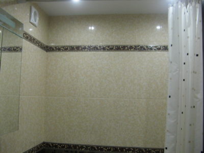 Наша компания выполнила ремонт ванной комнаты и туалета на улице Коломенская. Солидности интерьеру придают светло-бежевые и коричневые цвета, используемые при отделке поверхностей. Примечательно, что для облицовки нижней части стены и защитного экрана использовалась разноцветная мозаика. В комнате установлены ванна с гибким душем, штанга для штор, электрический полотенцесушитель и мойдодыр. В туалете смонтирован унитаз, а инженерные коммуникации замаскированы под общий интерьер. Общая смета ремонта — 125 тыс. руб. Черновые материалы — 34 тыс. р.
