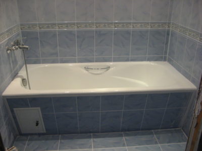 Для оформления поверхностей ванной комнаты и туалета в квартире (проезд Серебрякова) мы выбрали светло-бирюзовые оттенки. Таким образом удалось зрительно расширить пространство. Увеличению объема комнаты способствовали также установка точечных светильников на потолке. Для придания дизайну самобытности мы использовали декоративную фрезу и плитку с цветочным орнаментом. Инженерные коммуникации скрыты за защитным экраном позади нового унитаза и под ванной. Проведена новая электропроводка с выводом розеток для габаритной сантехники. Цена работы — 118 тысяч рублей. Стоимость черновых материалов — 33 тыс. р.